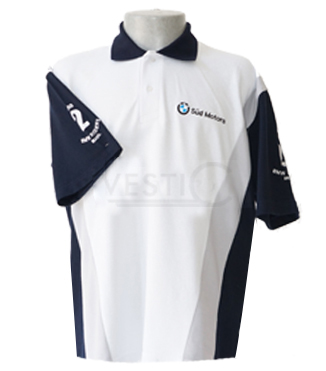 Modelo manga curta (com recorte), com detalhes na gola e punho, podendo conter bordado ou silk.