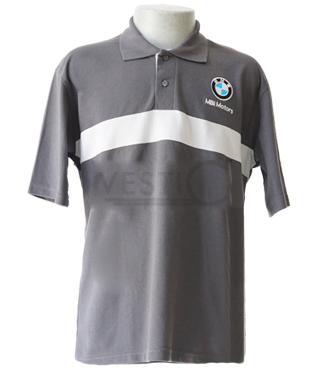 Modelo manga curta (com recorte), com detalhes na gola e punho, podendo conter bordado ou silk.